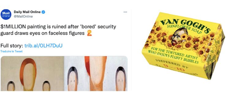 Les atteintes au respect de l’œuvre ne sont pas uniquement le fait de spectateurs non-avertis ou de vandales. Elles peuvent provenir de dérives mercantiles blessantes pour l’auteur. Un temple de la culture pure et dure, la #CourtauldGallery de Londres, vient d’en faire les frais. A l’occasion de l’exposition « Van Gogh. Self-Portraits », le shop du musée proposait jusqu’il y a peu de surprenants produits dérivés de #VanGogh : une gomme en forme d’oreille baptisée « Earaser » (jeu de mot anglais sur « ear », oreille, et « eraser » pour gomme à effacer), un savon aux tournesols pour les artistes torturés ainsi qu’un « Kit de premier secours émotionnel » en forme de paquet de cigarettes. Bref, des produits qui surfent lourdement sur l’instabilité psychique du peintre et se moquent des personnes souffrant de troubles mentaux. Ces objets jugés offensants ont été retiré de la vente par le musée qui s’est fait tirer les oreilles 😉 Alors coup de pub audacieux ou blague de mauvais goût ?