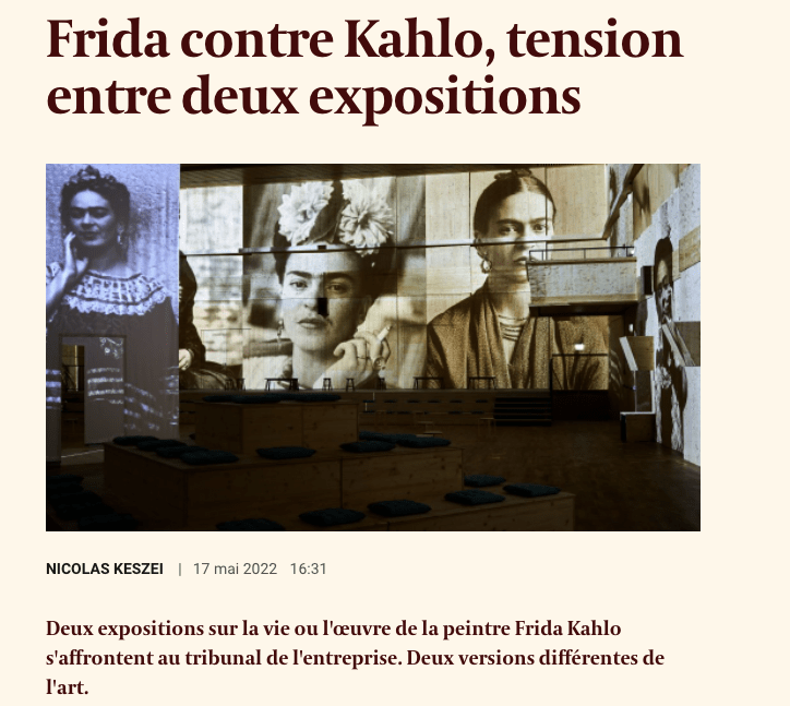 Y-a-t-il un usage « à titre de marque » lorsque le nom de Frida Kahlo est utilisé comme titre d’une exposition immersive sur l’œuvre et la vie de la célèbre artiste mexicaine ? Le journal L’Echo rend compte de mes plaidoiries devant le juge des référés du tribunal de l’entreprise de Bruxelles dans cette passionnante affaire qui oppose droit des marques et droit d’auteur. En attendant la décision, on peut toujours voir l’exposition 😉