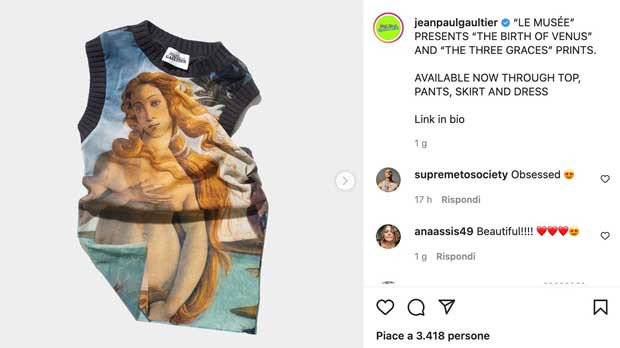 Fashion Police : L’Italie demande à la maison Jean Paul Gaultier d’aller se rhabiller. En cause, des pantalons, tops, robes, foulards et jupes imprimés à l’image d’un des tableaux les plus célèbres au monde, La Naissance de Vénus peint vers 1484-1485 par Sandro Botticelli et conservé à la Galerie des Offices de Florence.