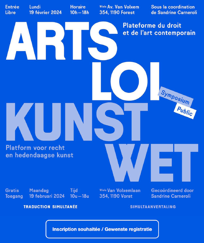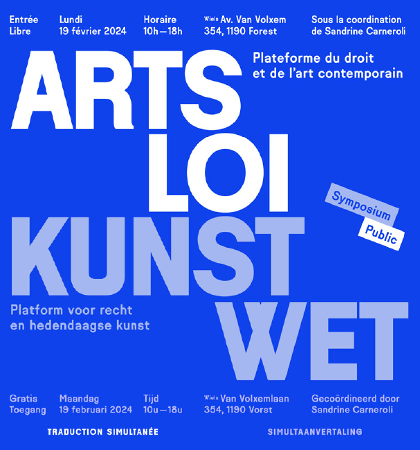 Le lundi 19 février, je lancerai la programmation du symposium « ARTS-LOI // KUNST-WET » avec une première journée de conférences et discussions consacrées au droit et à l’art contemporain. Pensée comme une voie d’accès pour augmenter la (re)connaissance des artistes et des productions artistiques, pour en faciliter la diffusion et le rayonnement, la journée rassemble des experts du droit mais aussi des artistes et professionnels du monde de l’art. Cette journée se veut pédagogique, inspirante et surtout optimiste.